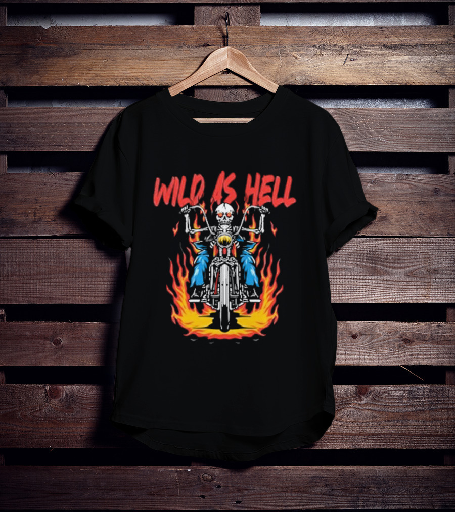 Skeleton Wild As Hell Motorcycle Flames Rider T-Shirt