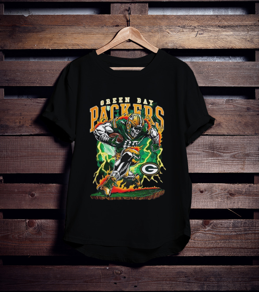 Green Bay Packers Skeleton Player Football Lightning Burst T-Shirt