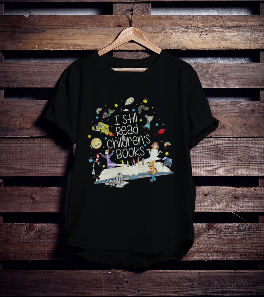 I Still Read Children's Books Open Book Characters Stars Rainbows T-Shirt