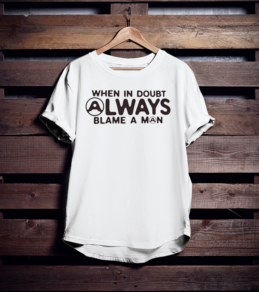 This When in Doubt Always Blame a Man Shirt is constructed for regular, casual wear. Made from 100% ring-spun cotton, known for its softness. It's pre-shrunk to help maintain shape after washing. The regular fit offers a standard silhouette suitable for various body types (available in S-5XL) and conforms to standard U.S. sizing. Suitable as a standalone casual shirt or a base layer. Printed and shipped from Charlotte, North Carolina, USA.
