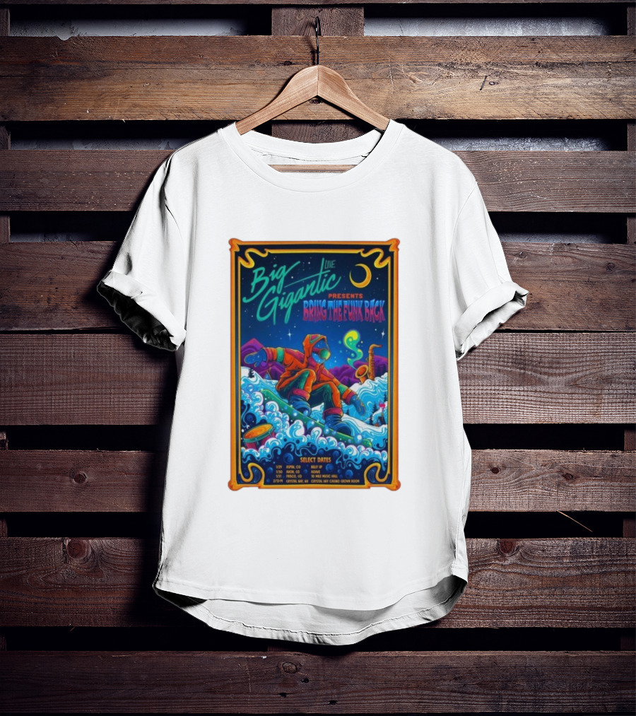 Big Gigantic Live Presents Bring The Funk Back Tour 2026 Snowboarding Adventure Moon Saxophone Select Dates Aspen Boulder Frisco Crystal Bay T-Shirt