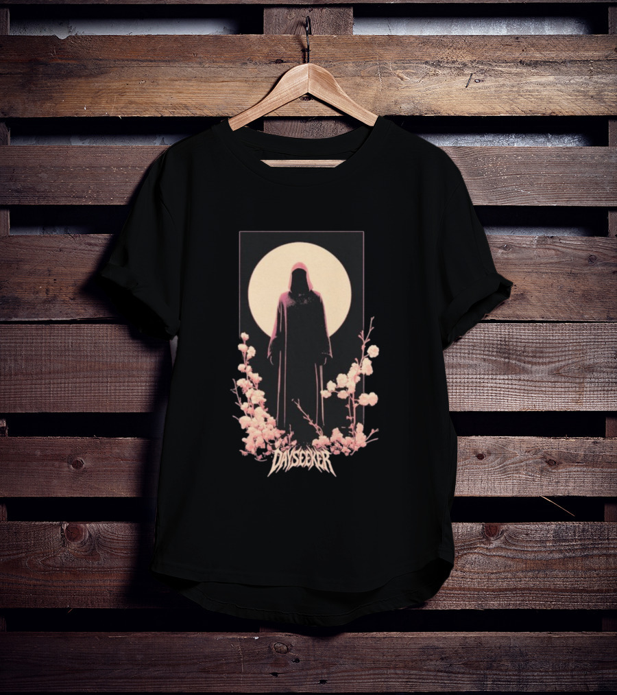 Dayseeker The Living Dead Hooded Figure With Full Moon And Flowers T-Shirt