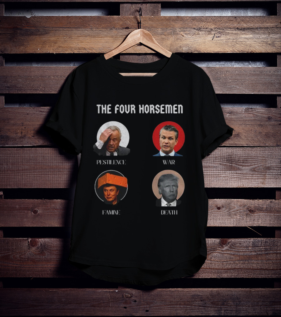 The Four Horsemen Pestilence War Famine Death Donald Trump Elon Musk T-Shirt