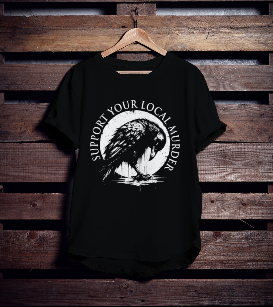 This Support Your Local Murder Crow Illustration Shirt is constructed for regular, casual wear. Made from 100% ring-spun cotton, known for its softness. It's pre-shrunk to help maintain shape after washing. The regular fit offers a standard silhouette suitable for various body types (available in S-5XL) and conforms to standard U.S. sizing. Suitable as a standalone casual shirt or a base layer. Printed and shipped from Charlotte, North Carolina, USA.
