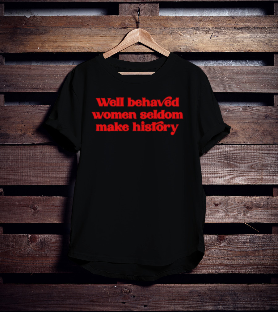 This Well-Behaved Women Seldom Make History Shirt is constructed for regular, casual wear. Made from 100% ring-spun cotton, known for its softness. It's pre-shrunk to help maintain shape after washing. The regular fit offers a standard silhouette suitable for various body types (available in S-5XL) and conforms to standard U.S. sizing. Suitable as a standalone casual shirt or a base layer. Printed and shipped from Charlotte, North Carolina, USA.