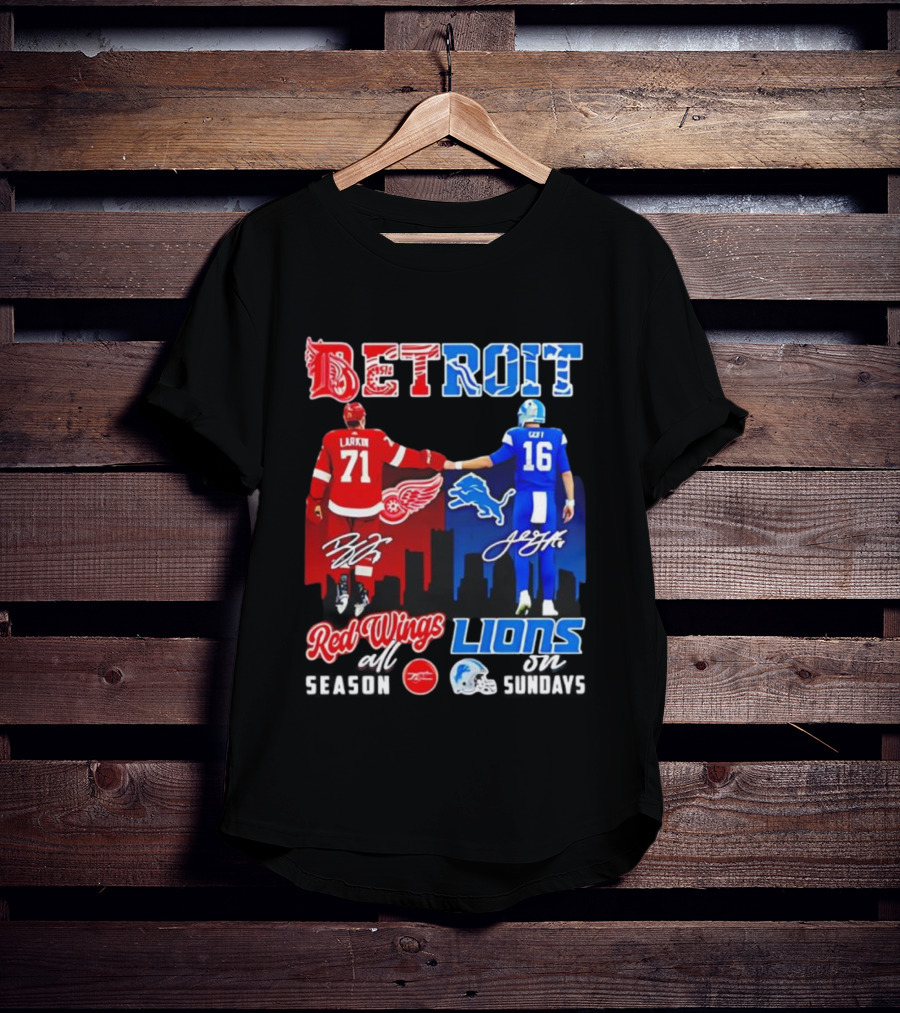 Detroit Sports Red Wings Lions Larkin Goff Signatures T-Shirt