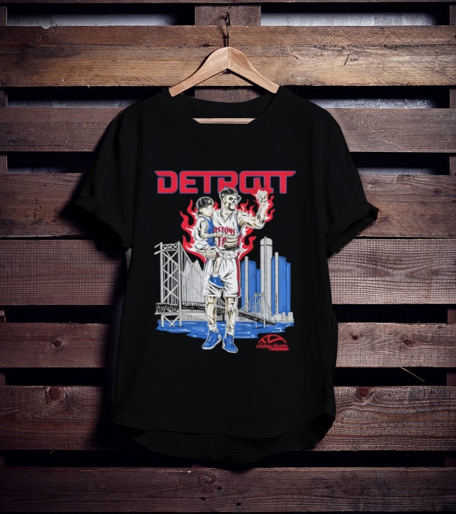 LINDSEY HUNTER FOUNDATION VENGEFUL DETROIT PISTONS RED FLAMES URBAN CITYSCAPE T-Shirt