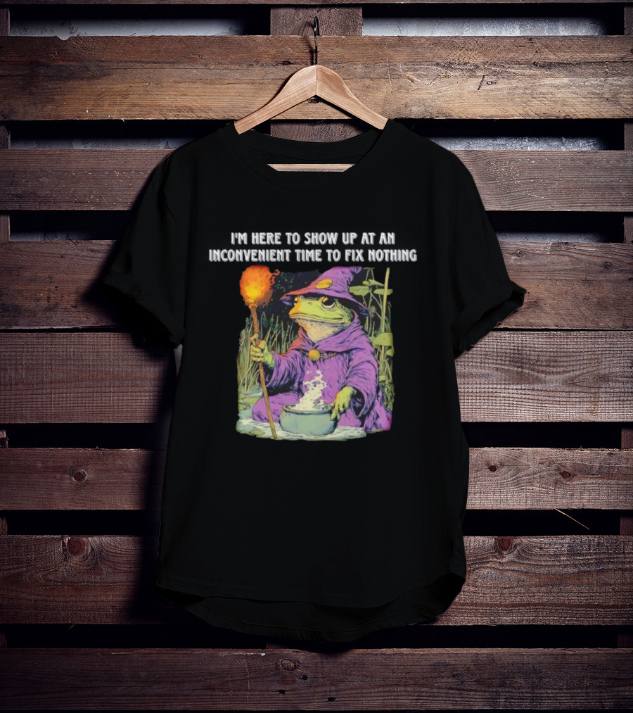 I'm Here To Show Up At An Inconvenient Time To Fix Nothing Frog Wizard T-Shirt