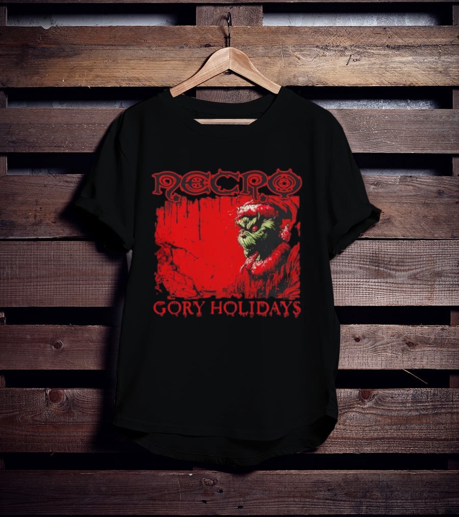 Necro Gory Holidays Grinch Santa Red Dripping Art T-Shirt