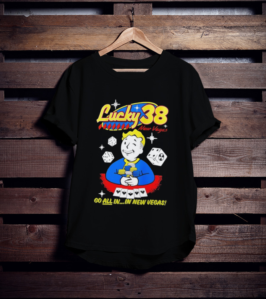 Lucky 38 Casino New Vegas Vault Boy Poker Chips Casino Dice T-Shirt