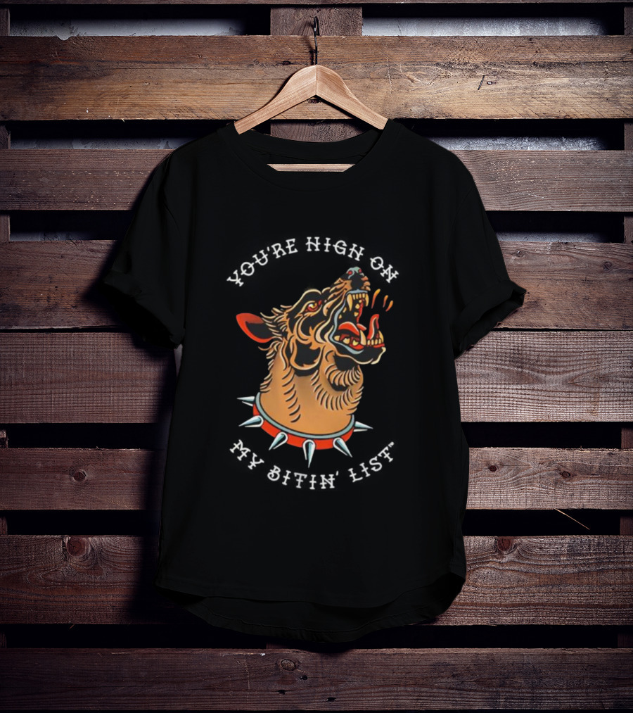 Tyler Childers High On My Bitin’ List Dog With Spiked Collar Retro Style T-Shirt
