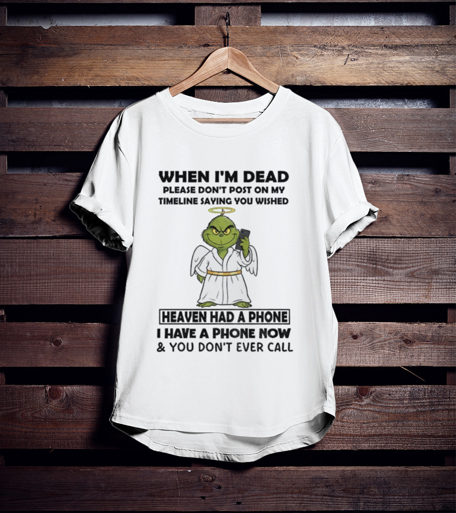 Grinch When I'm Dead Don't Post On My Timeline You Wished Heaven Had A Phone I Have One Now And You Don't Call Christmas T-Shirt