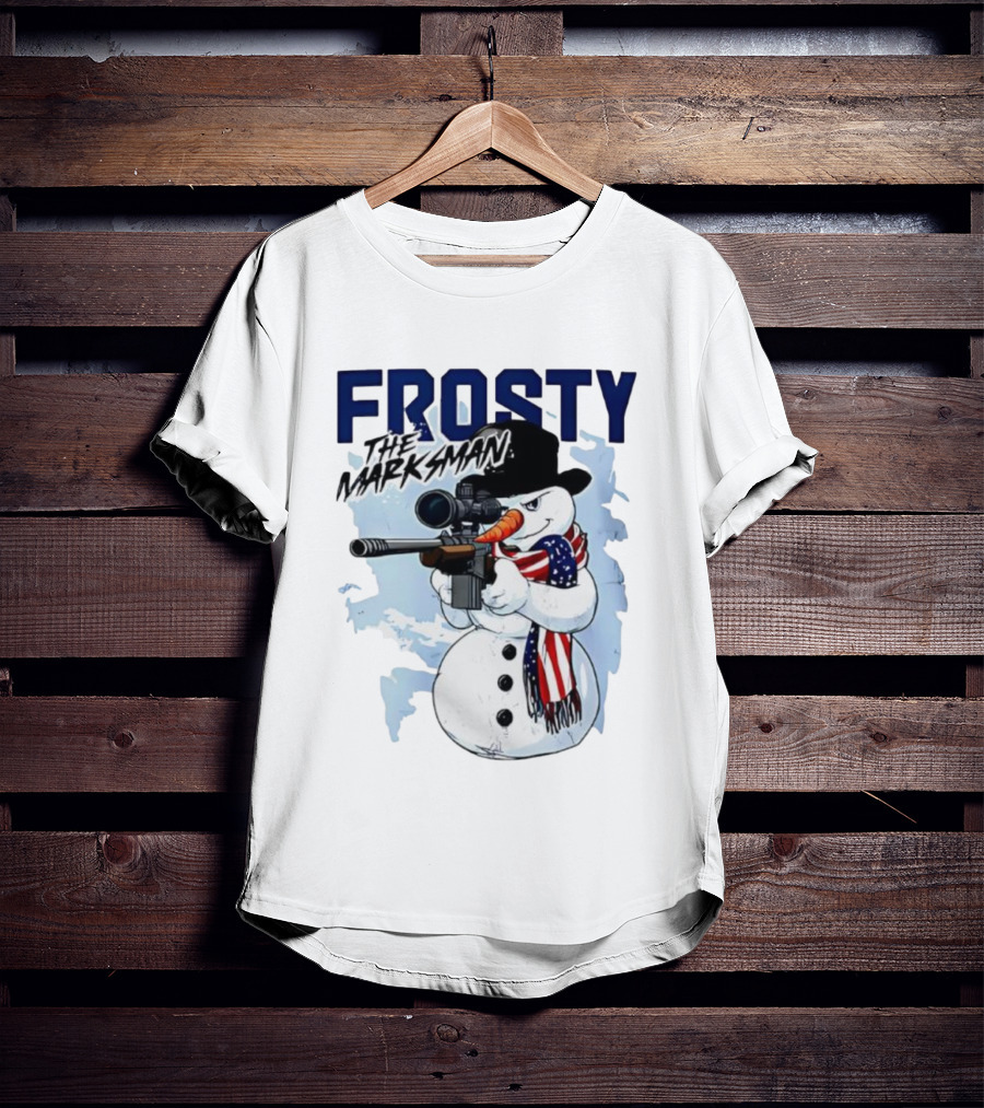 Frosty The Marksman Snowman USA Flag Scarf Sniper Hat T-Shirt