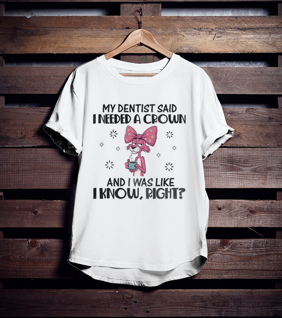 Funny Pink Bunny Bow My Dentist Said I Needed A Crown And I Was Like I Know Right T-Shirt