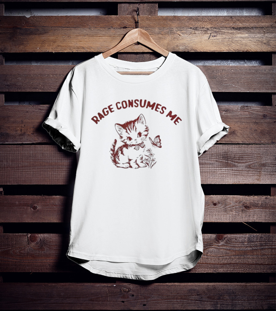 Rage Consumes Me Cat And Butterfly Illustration T-Shirt