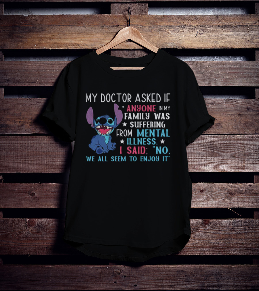 Stitch My Doctor Asked If Anyone In My Family Was Suffering From Mental Illness I Said No We All Seem To Enjoy It T-Shirt