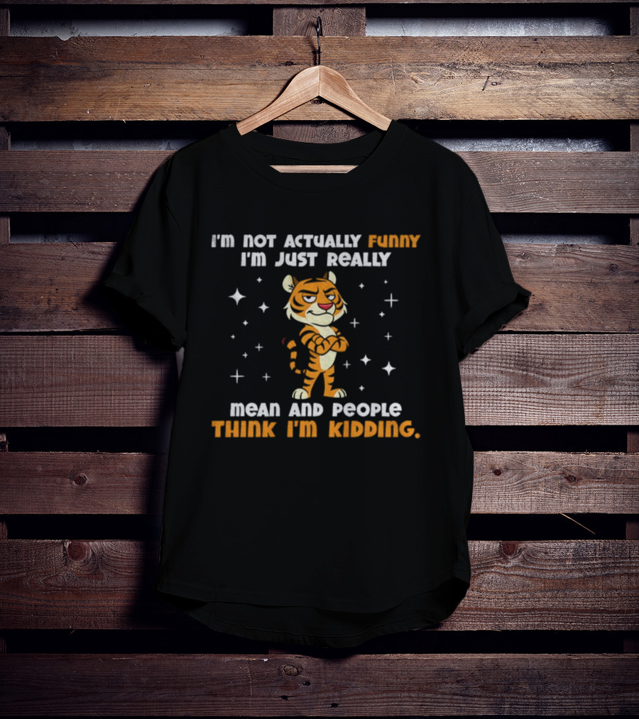 Tiger Cartoon I'm Not Actually Funny Mean People Think I'm Kidding T-Shirt