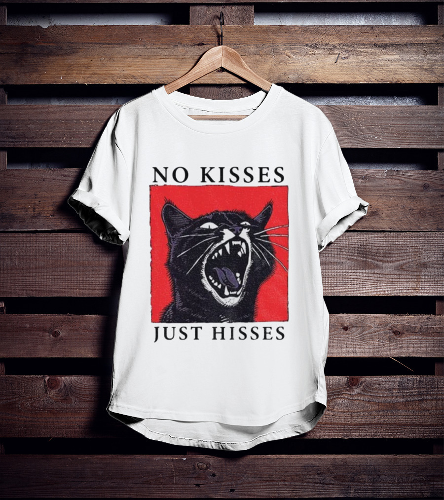 No Kisses Just Hisses Angry Cat Funny Feline Humor T-Shirt