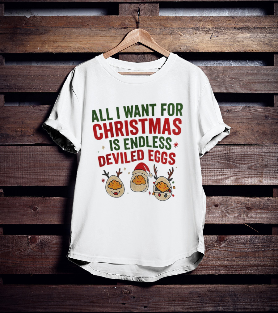 All I Want For Christmas Is Endless Deviled Eggs With Santa Hat And Egg Reindeers T-Shirt