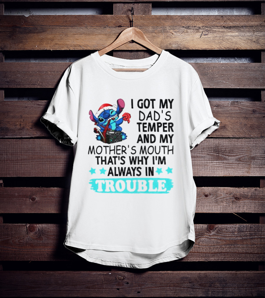 Stitch I Got My Dad’s Temper And My Mother’s Mouth That’s Why I’m Always In Trouble Christmas T-Shirt