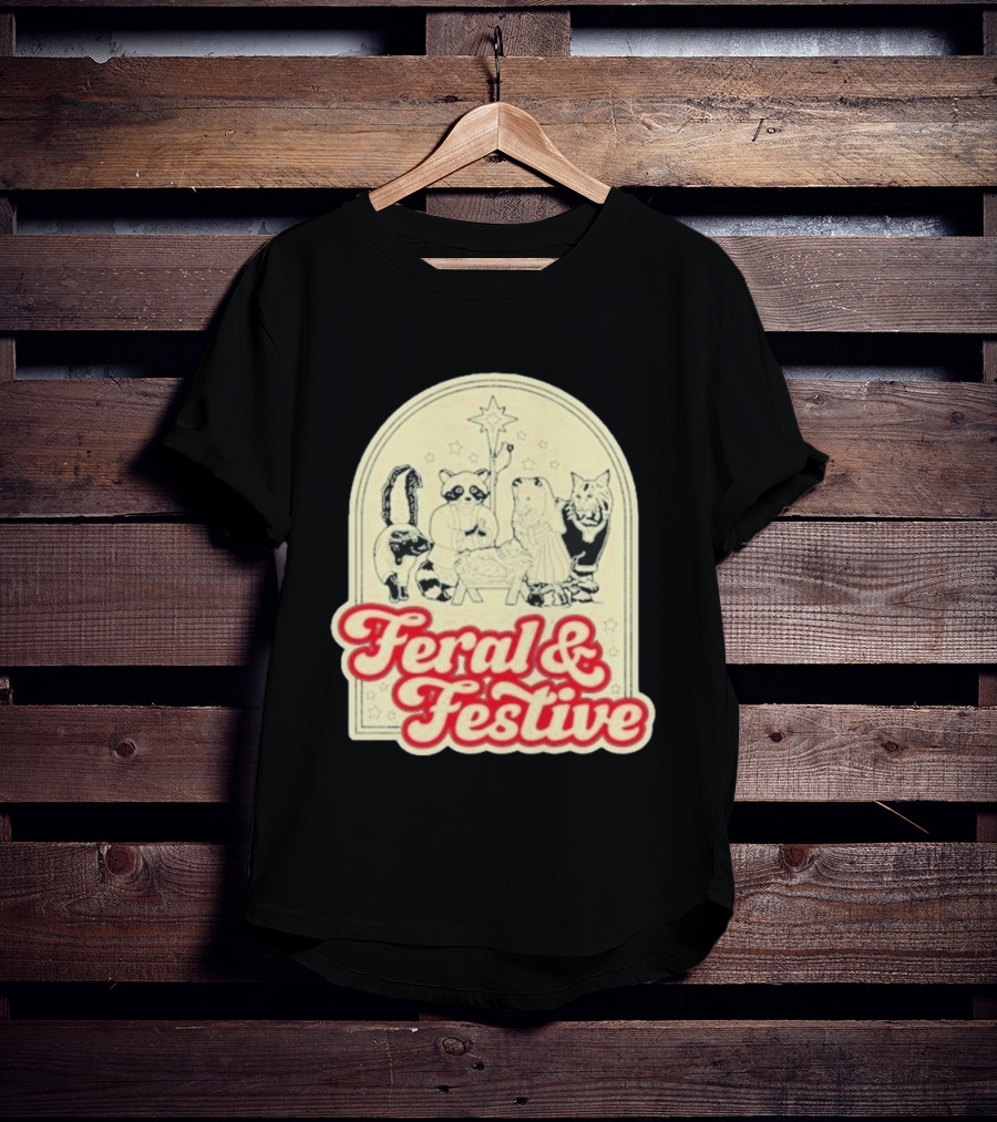 Feral And Festive Animal Nativity Scene Christmas Humor Raccoon Cat Skunk Ensemble T-Shirt