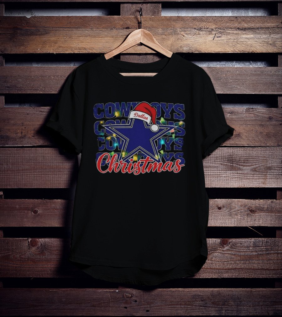 Cowboys Dallas Star Santa Hat Christmas Lights NFL Football Holiday T-Shirt