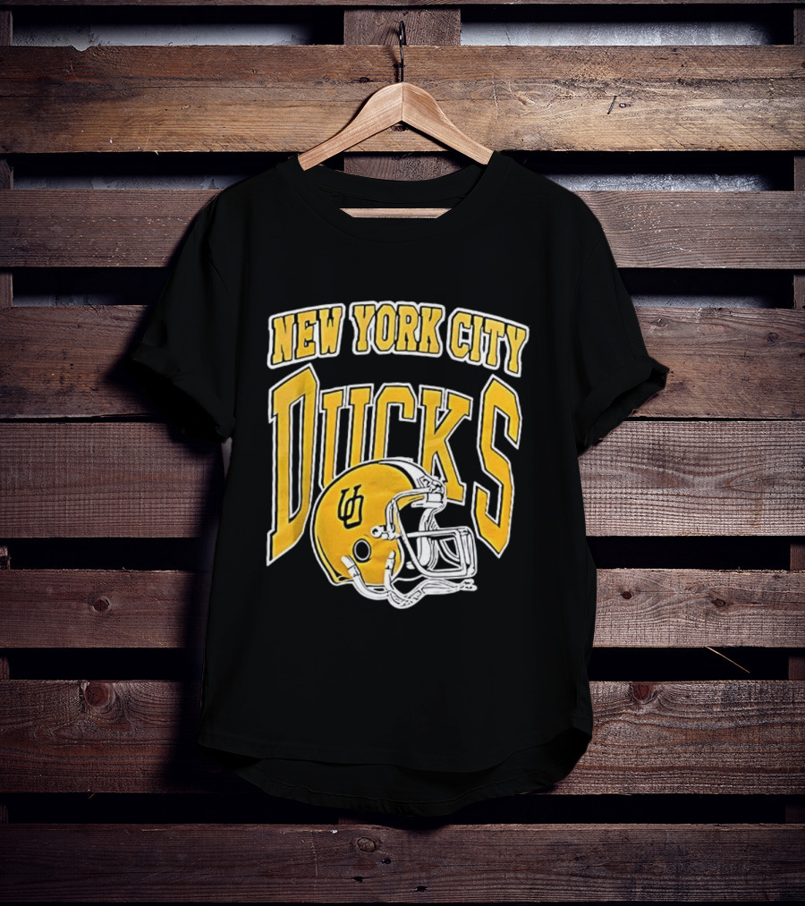 This New York City Ducks Football Helmet Graphic Shirt is constructed for regular, casual wear. Made from 100% ring-spun cotton, known for its softness. It's pre-shrunk to help maintain shape after washing. The regular fit offers a standard silhouette suitable for various body types (available in S-5XL) and conforms to standard U.S. sizing. Suitable as a standalone casual shirt or a base layer. Printed and shipped from Charlotte, North Carolina, USA.