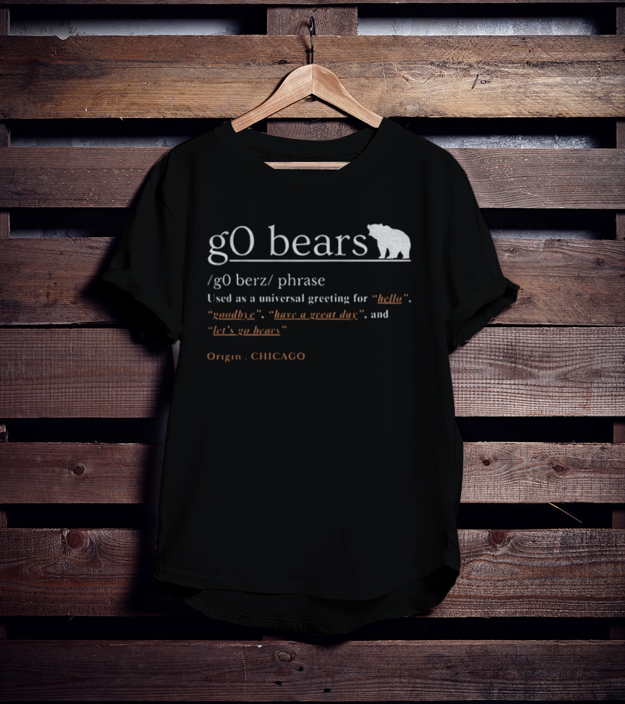 GO Bears Universal Greeting Origin CHICAGO Football Phrase Definition T-Shirt