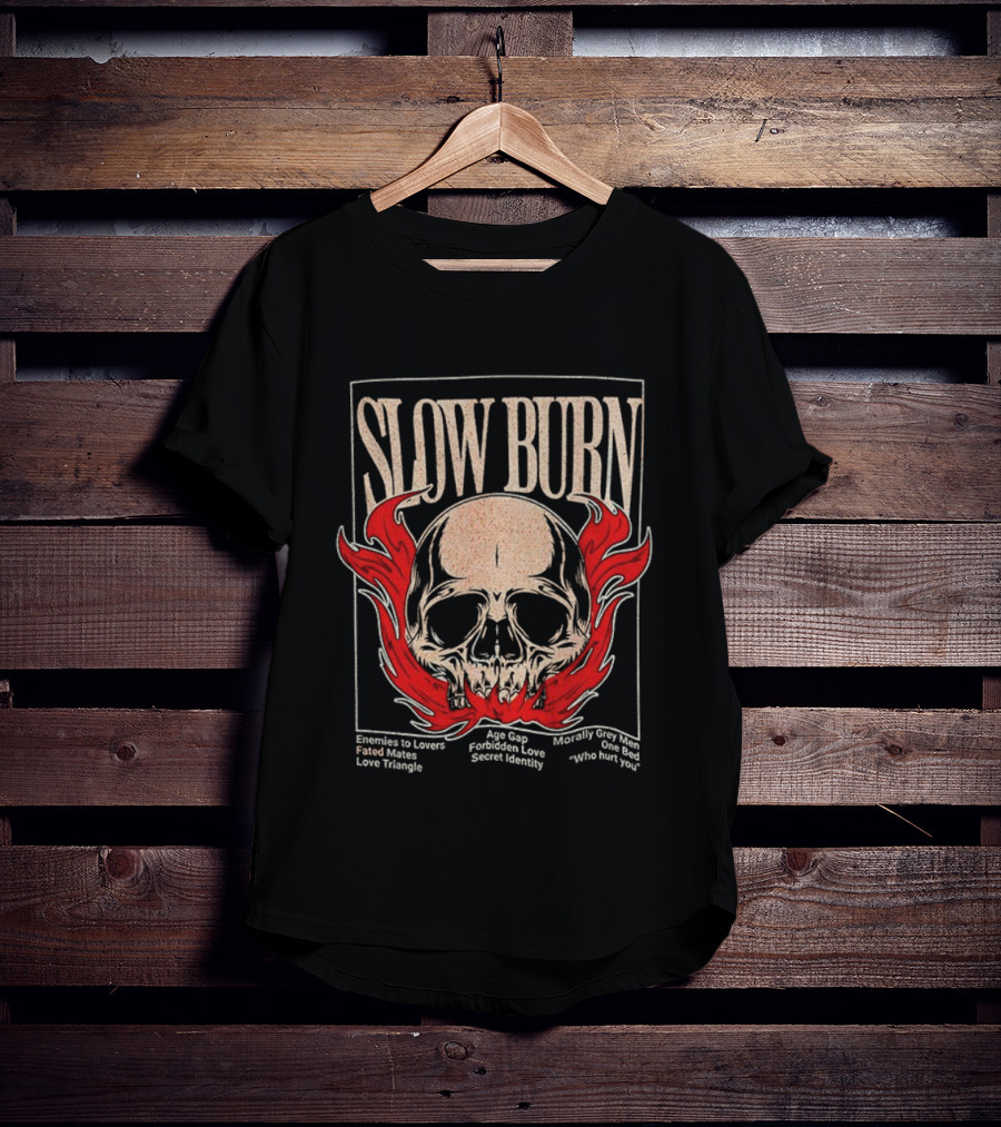 This Slow Burn Skull Enemies to Lovers Fated Mates Love Triangle Age Gap Forbidden Love Secret Identity Shirt is constructed for regular, casual wear. Made from 100% ring-spun cotton, known for its softness. It's pre-shrunk to help maintain shape after washing. The regular fit offers a standard silhouette suitable for various body types (available in S-5XL) and conforms to standard U.S. sizing. Suitable as a standalone casual shirt or a base layer. Printed and shipped from Charlotte, North Carolina, USA.