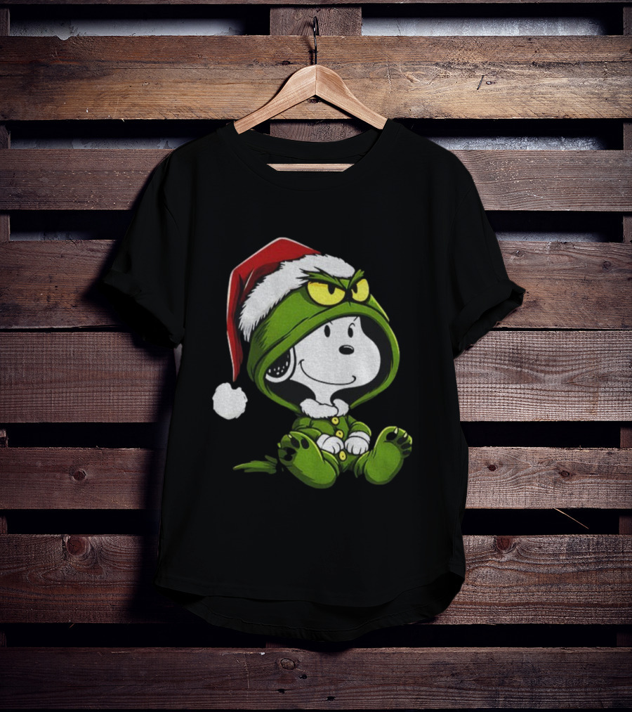 Snoopy Grinch Santa Hat Cute Cartoon Merry Christmas T-Shirt