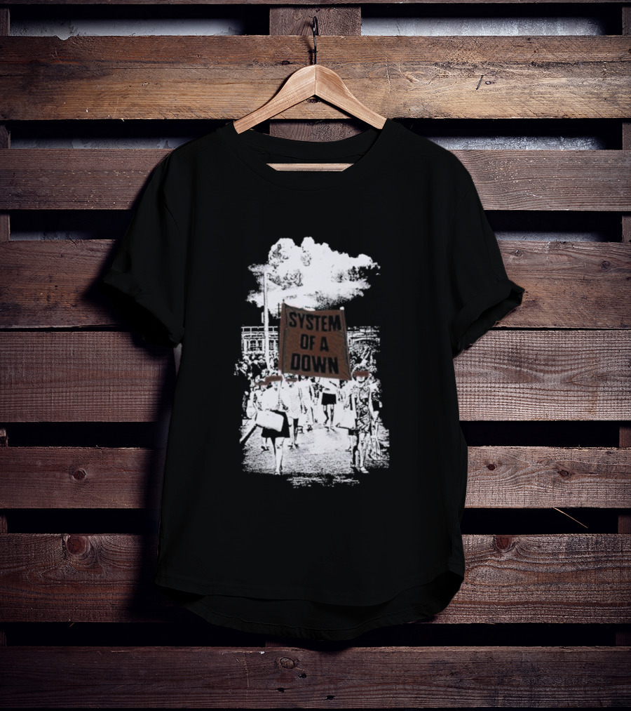 This System Of A Down Red Flag Band Tribute Shirt is constructed for regular, casual wear. Made from 100% ring-spun cotton, known for its softness. It's pre-shrunk to help maintain shape after washing. The regular fit offers a standard silhouette suitable for various body types (available in S-5XL) and conforms to standard U.S. sizing. Suitable as a standalone casual shirt or a base layer. Printed and shipped from Charlotte, North Carolina, USA.