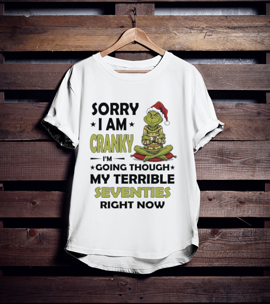 Sorry I Am Cranky Grinch Santa Hat Going Through My Terrible Seventies T-Shirt