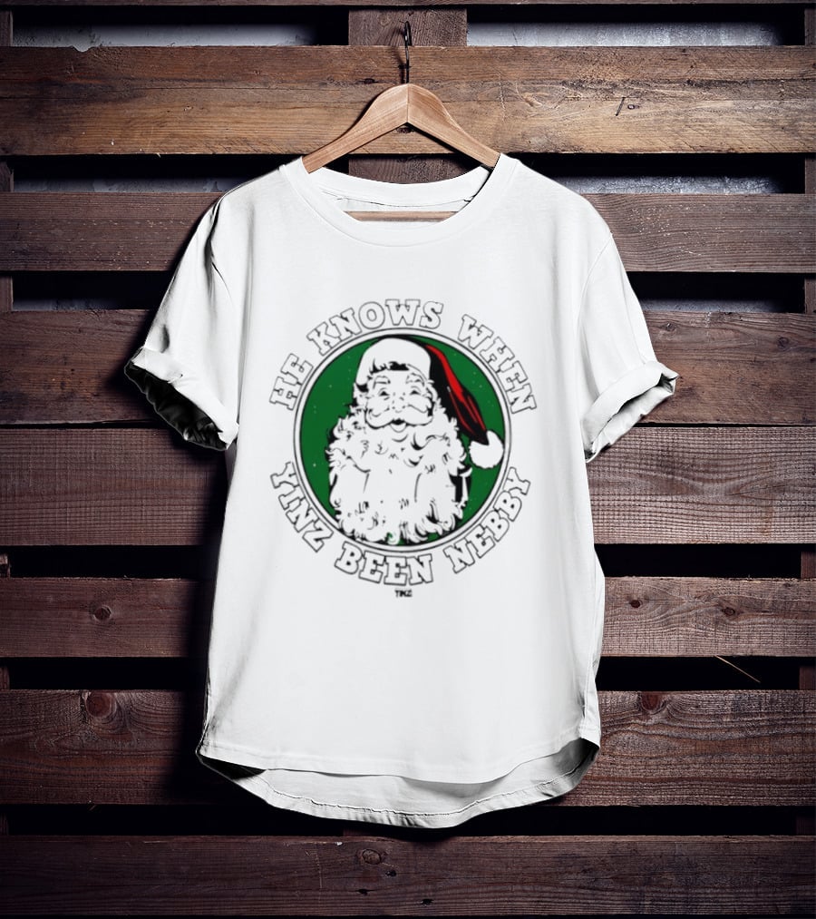 He Knows When Yinz Been Nebby Santa Pittsburgh Christmas T-Shirt