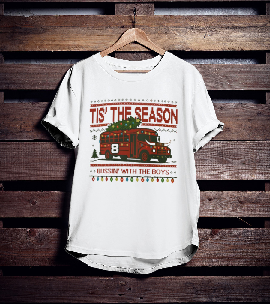 Tis The Season Festive Bus Bussin’ With The Boys Holiday Lights T-Shirt