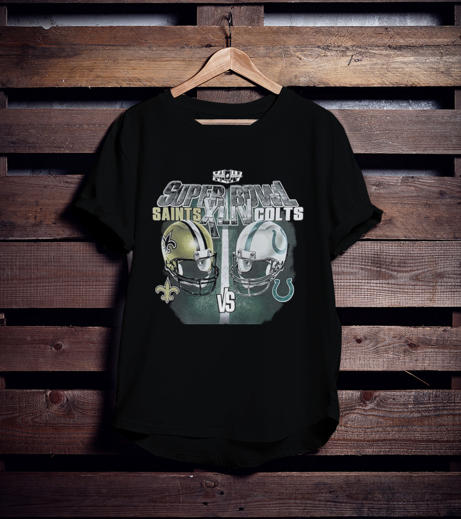 This Indianapolis Colts vs New Orleans Saints Super Bowl XLIV Helmet Matchup Retro 2010 Shirt is constructed for regular, casual wear. Made from 100% ring-spun cotton, known for its softness. It's pre-shrunk to help maintain shape after washing. The regular fit offers a standard silhouette suitable for various body types (available in S-5XL) and conforms to standard U.S. sizing. Suitable as a standalone casual shirt or a base layer. Printed and shipped from Charlotte, North Carolina, USA.