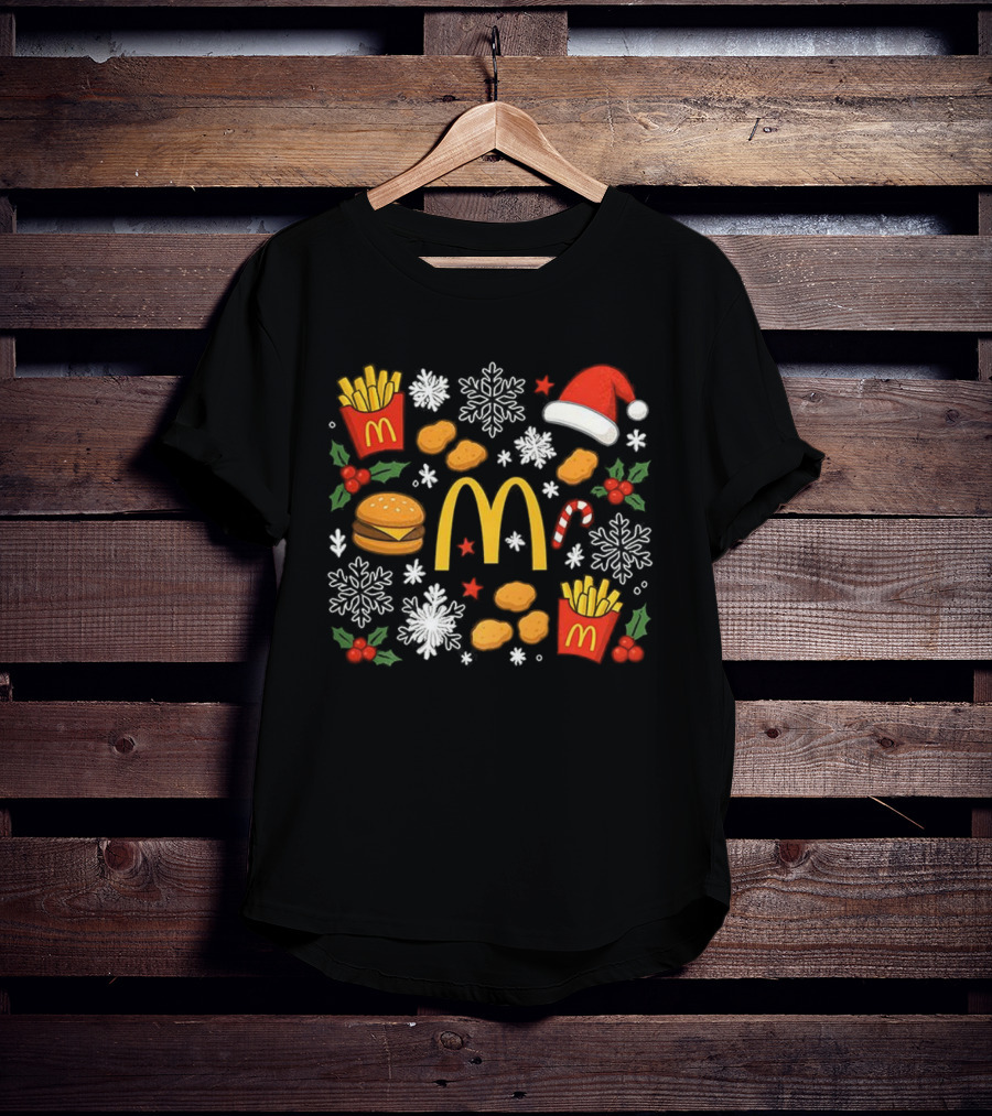 McDonald’s French Fries Chicken Nuggets Burgers Christmas Santa Hat Snowflakes Candy Cane T-Shirt