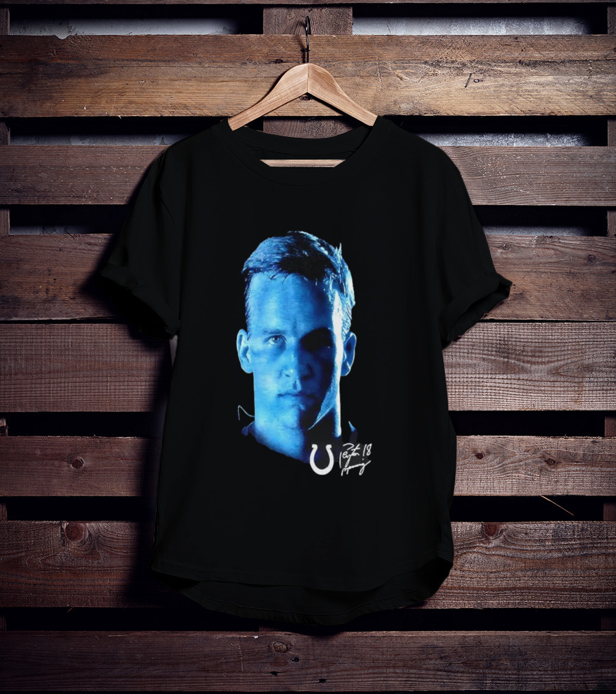 Peyton Manning Indianapolis Colts Number 18 2000s Signature Colts Logo T-Shirt