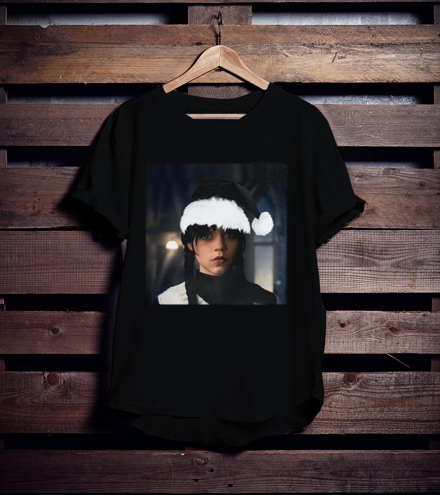 Wednesday Addams Santa Hat Christmas Holiday Mashup T-Shirt