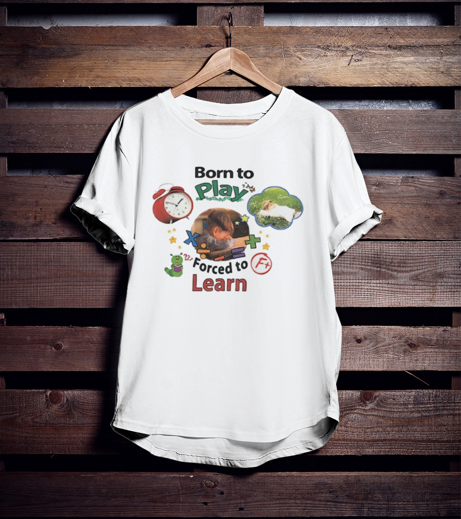 Born To Play Forced To Learn Kids Education Humor With Alarm And F Grade T-Shirt