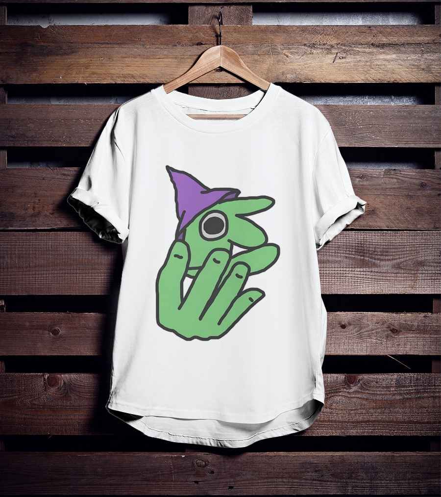 Glep Smiling Friends Character With Green Hand And Purple Hat T-Shirt