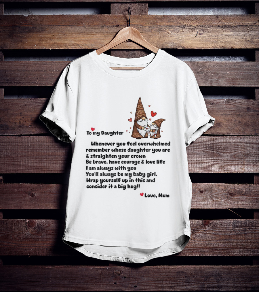 This Gnome Love to My Daughter Remember Whose Crown You Wear Whenever Overwhelmed Shirt is constructed for regular, casual wear. Made from 100% ring-spun cotton, known for its softness. It's pre-shrunk to help maintain shape after washing. The regular fit offers a standard silhouette suitable for various body types (available in S-5XL) and conforms to standard U.S. sizing. Suitable as a standalone casual shirt or a base layer. Printed and shipped from Charlotte, North Carolina, USA.