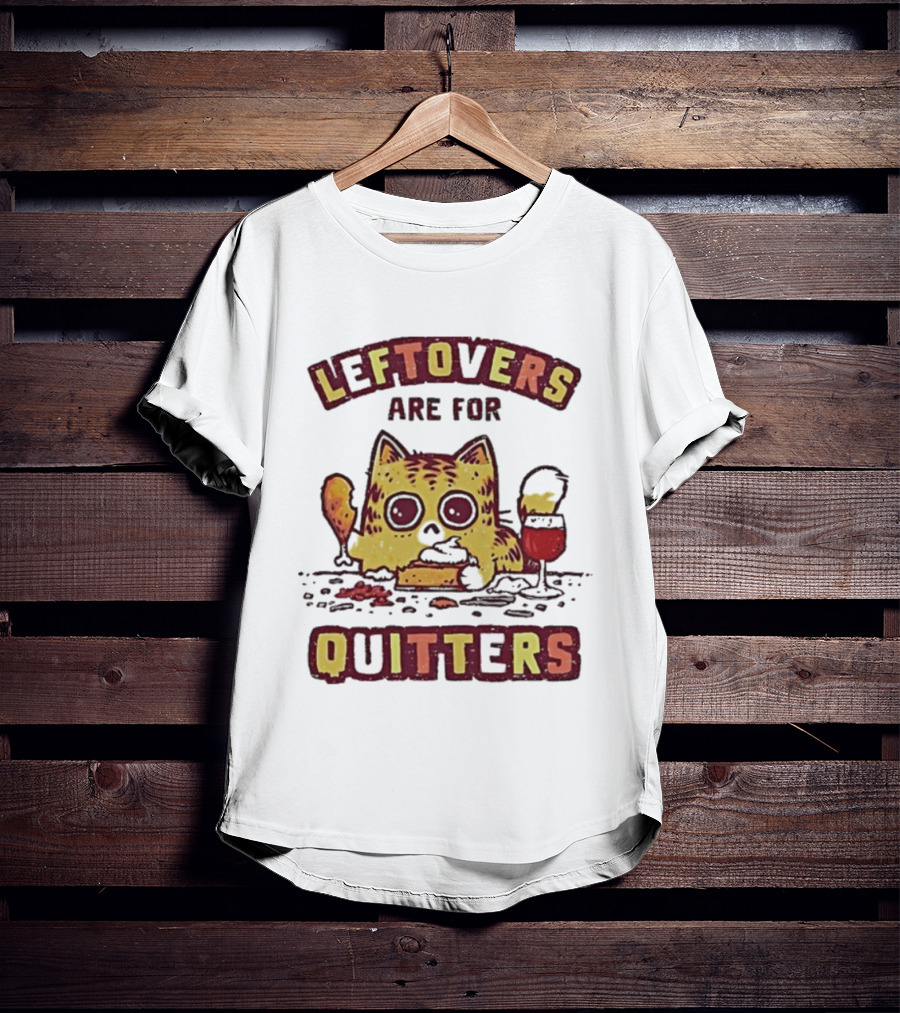 Leftovers Are For Quitters Funny Cat Eating Illustration T-Shirt