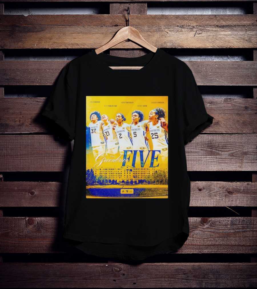West Virginia Mountaineers Women's Basketball The Greenbrier Five Celia Raleigh Riley Makalinsky Sidney Woodley Sydney Shaw Logan Johnson T-Shirt