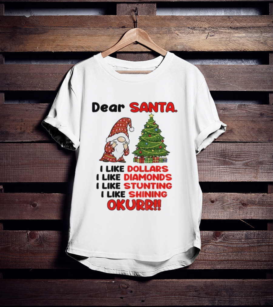 Dear Santa Gnome Xmas I Like Dollars Diamonds Stunting Shining Okurrr Merry Christmas T-Shirt