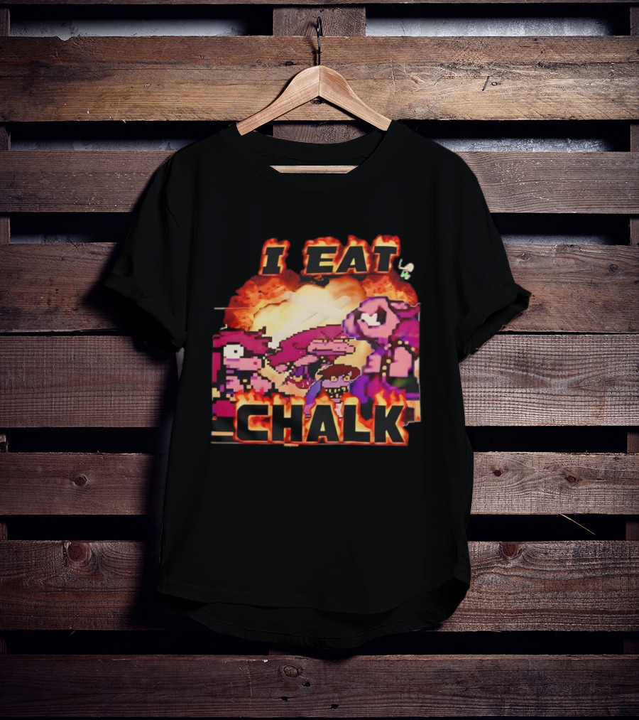 I Eat Chalk Pixel Characters Fire Background Design T-Shirt