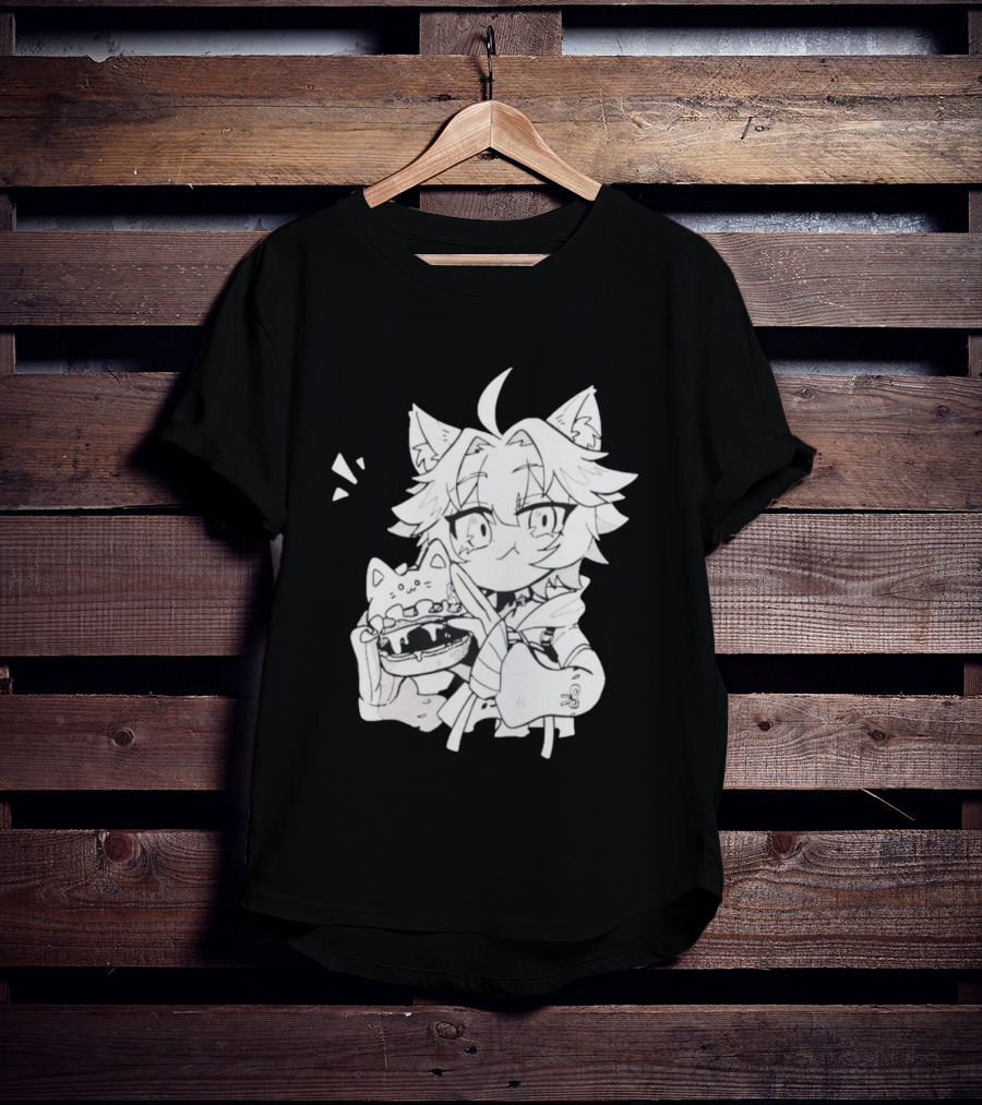Genshin Impact Cat-Eared Character With Cat Burger Anime Illustration T-Shirt