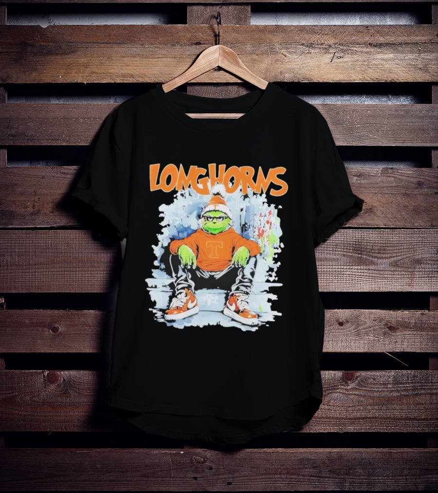 Texas Longhorns Christmas 2025 Grinch Sitting On Steps T-Shirt