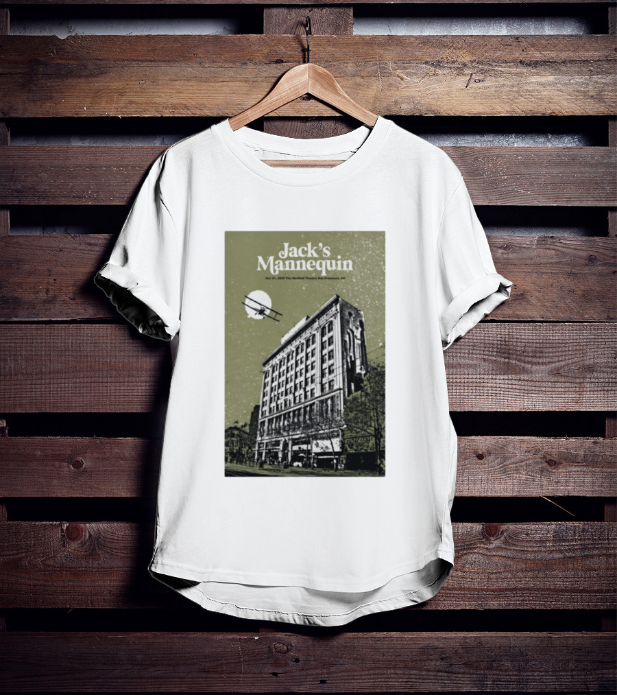 Jack’s Mannequin Nov 21 2025 The Warfield Theatre San Francisco CA Airplane Building T-Shirt