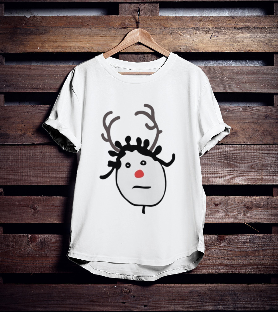 Rhenna Holiday Reindeer Drawing Red Nose Antlers T-Shirt