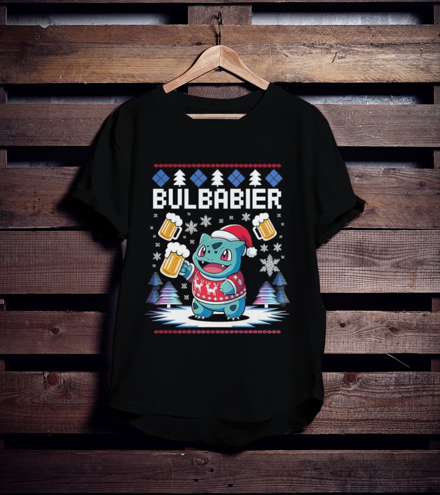 Bulbabier Christmas Sweater Bulbasaur With Santa Hat And Beer S T-Shirt